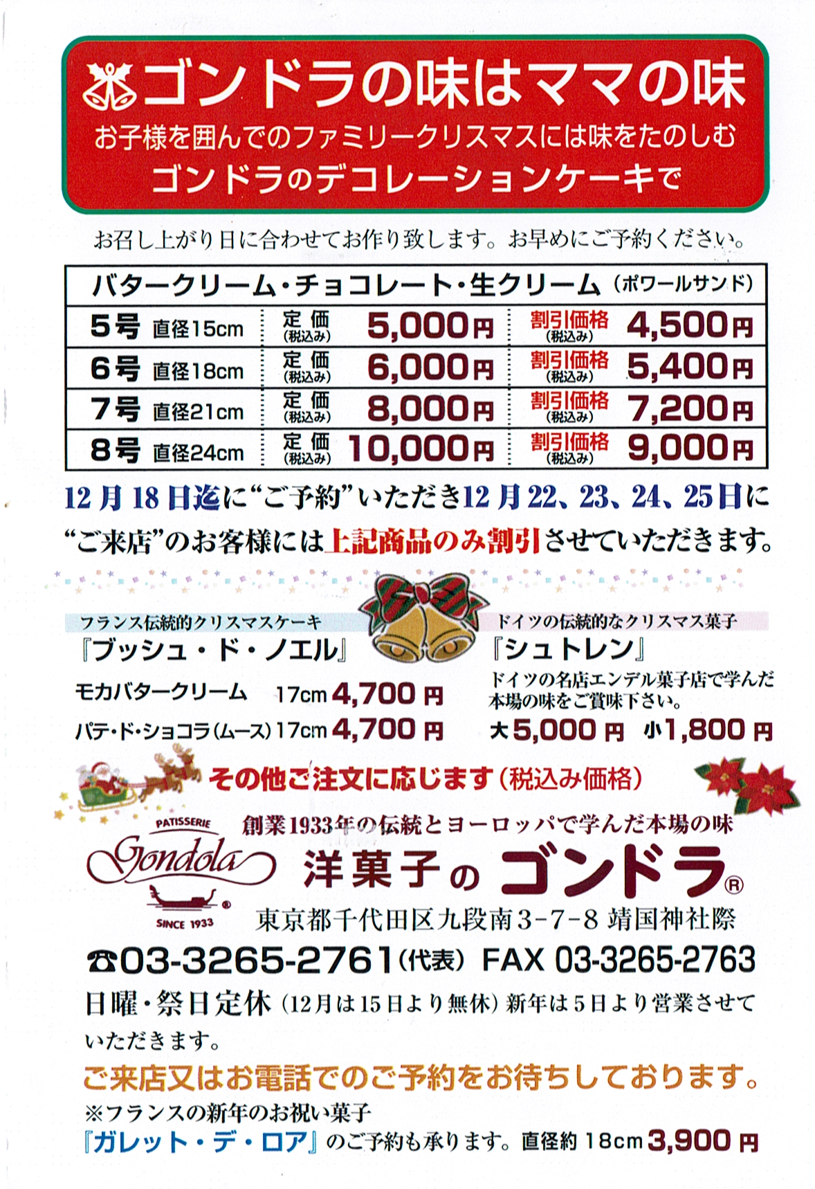 12月18日(木)までに予約、12月22日(月)~25日(木)までに受取の方のみ10%引きとさせて頂きます。